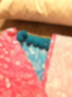 Take your pompom edged front of the cushion square, and lay one of the back pieces on top of this with the ‘correct’ fabric side of the cushion facing inwards. Finish with the final back part of the cushion also facing inwards. Pin all around the edge to secure into position.
