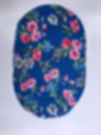 Turn R/S out, iron flat and create an infinity style connection either side by joining the two short edges together. Remember to close up the two 1'' gaps you left which enabled you to join the two short edges. Next pin the base R/S to R/S on the outside of the liner, because the bottom is smaller than the top you will need to add a couple of little pleats.