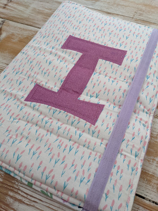 2. This case was made for an Isabelle, so I used a small piece of glitter fabric I had to make an I for the front. Draw your letter on some Bondaweb (remember it will need to be back to front when drawn on the paper side). Iron on to the reverse of the glitter fabric or fabric of choice, cut it out and peel off the paper. Fold the front piece in half and position your letter in the centre front. Iron into place. I didn't want to use the iron directly on the glitter fabric so used another piece of fabric on top to protect it.